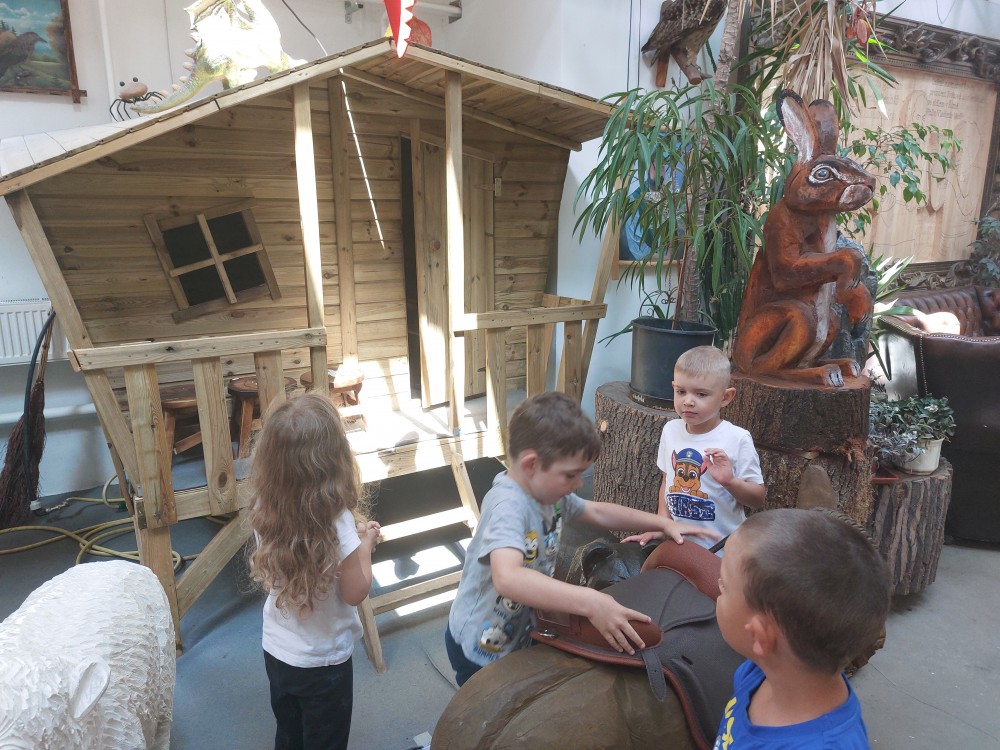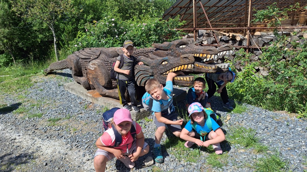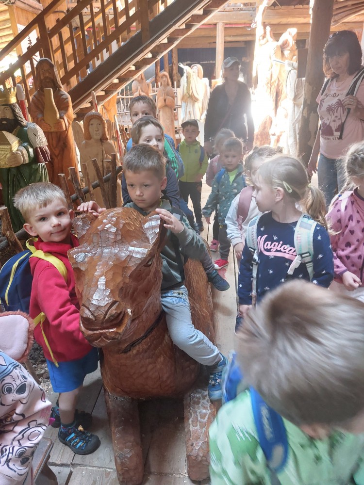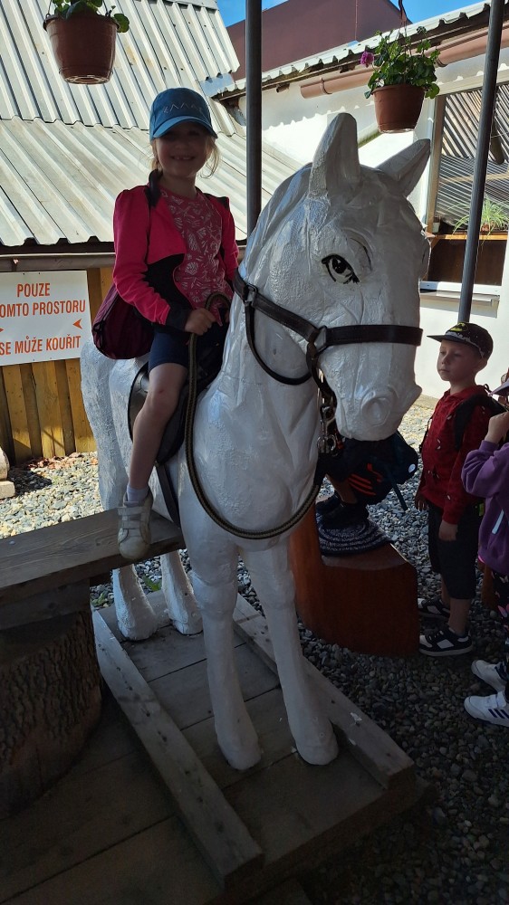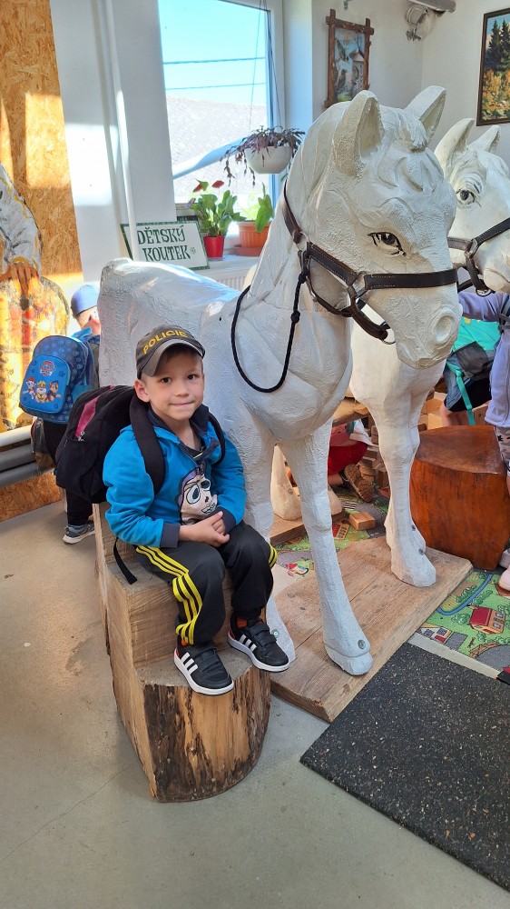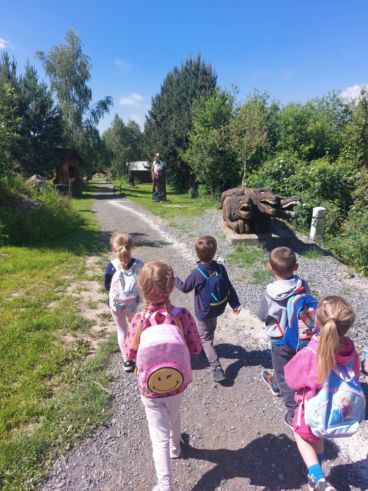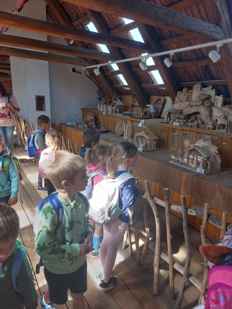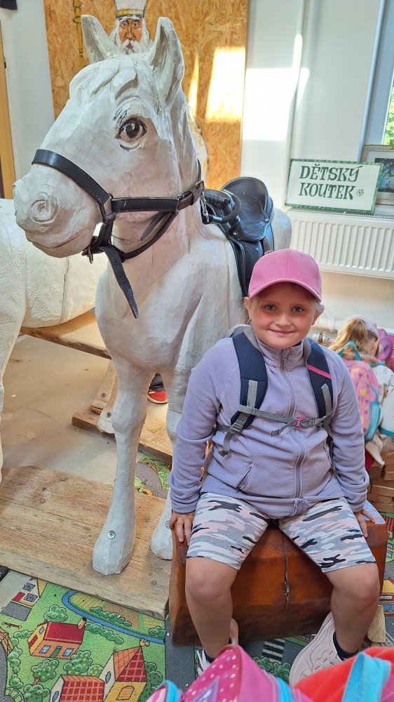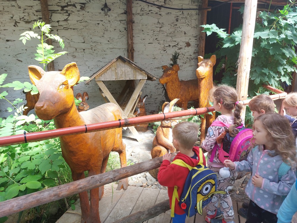 Ve čtvrtek 6. 6. 2024 se třídy Soviček a Sluníček vypravily na školní výlet do Pradědovy galerie v Jiříkově. Děti viděly celoživotní dílo uměleckého řezbáře Jiřího Halouzky, držitele