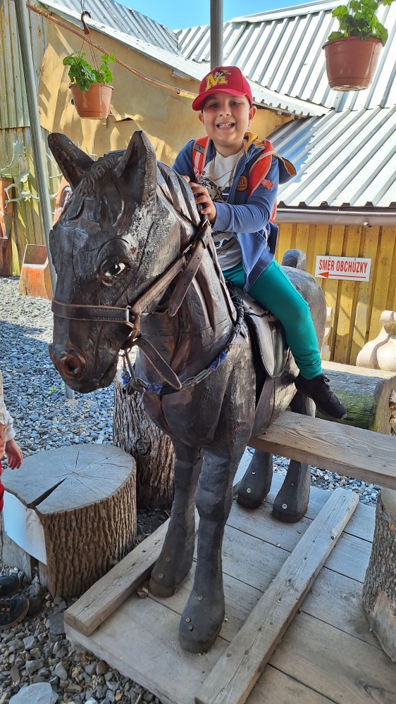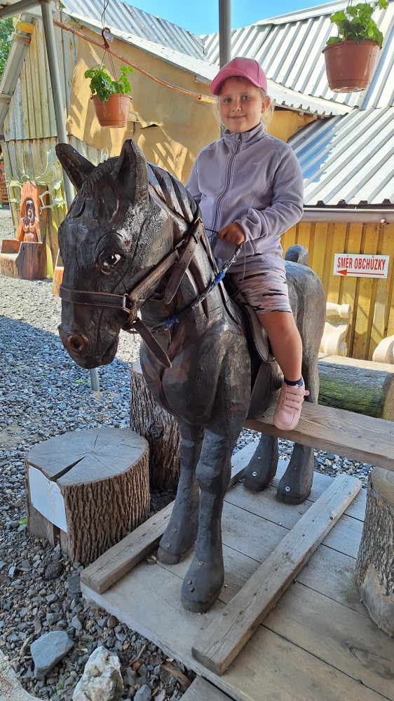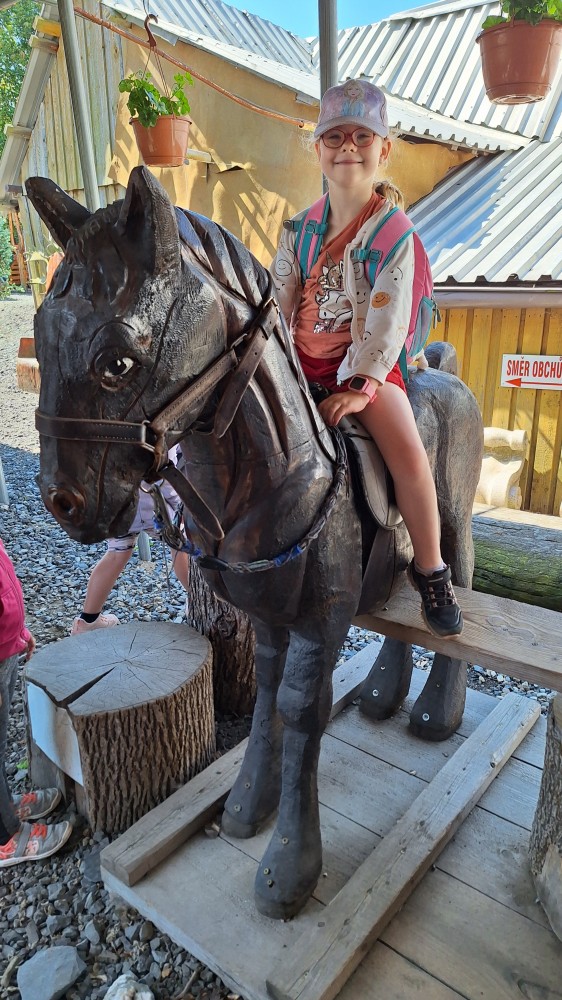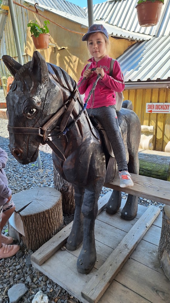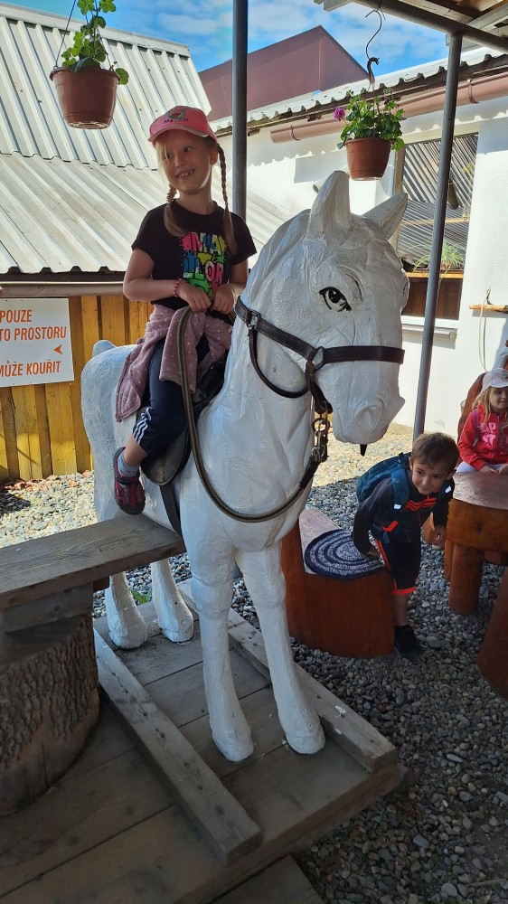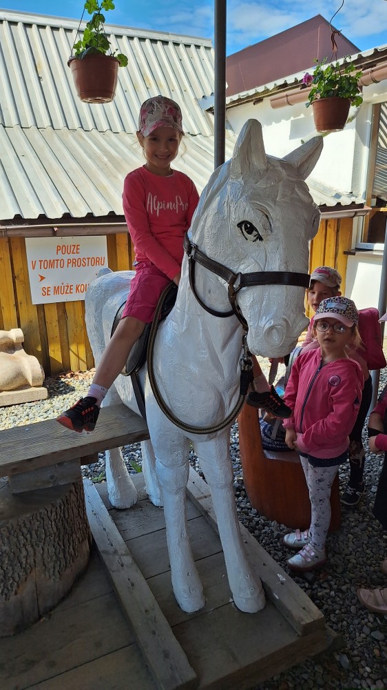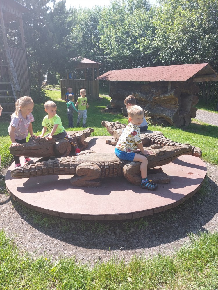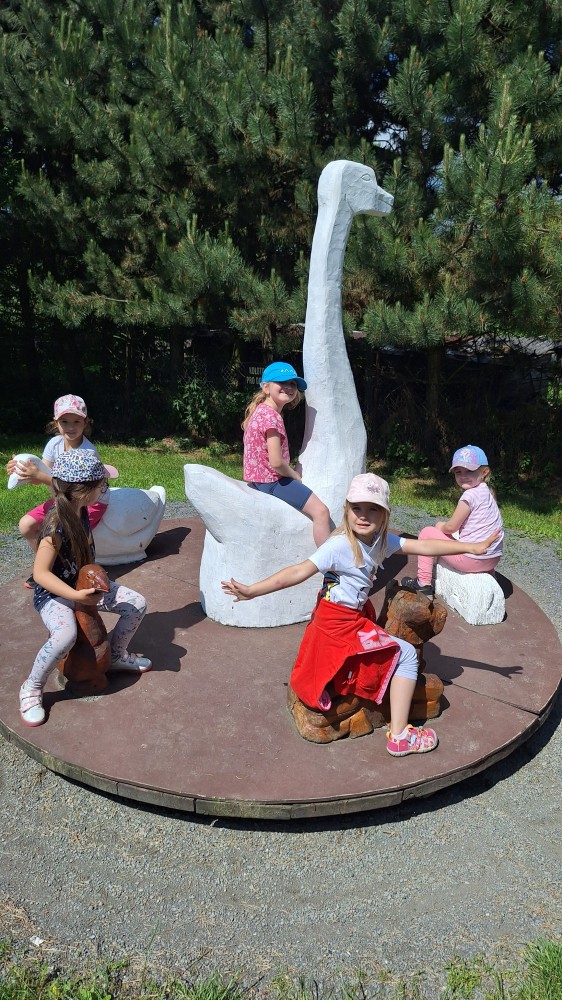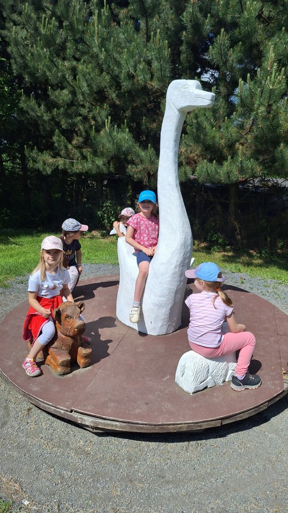 čtyř světových a dvaceti pěti českých rekordů, které byly zapsány do Guinessovy knihy rekordů.Obdivovaly vyřezávané sochy pohádkových postav, zvířat a dominantu celé galerie, vládce hor - děda Praděda. Z vyhlídky pozorovaly stádo daňků. Spoustu legrace si užily na kolotočích, skluzavkách a průlezkách. Počasí nám přálo a děti se vrátily domů spokojené a plné zážitků.
