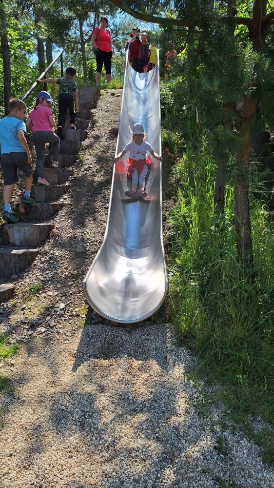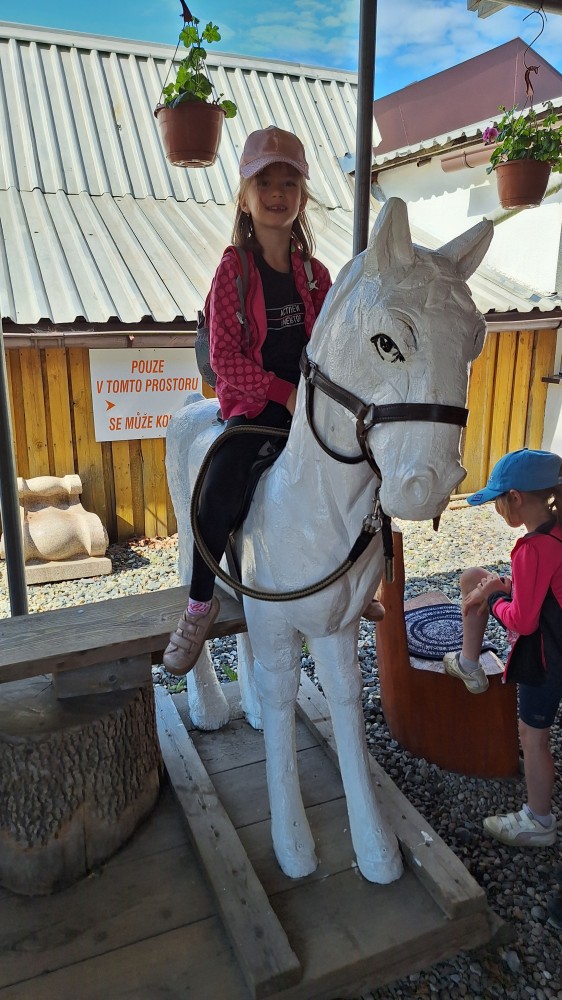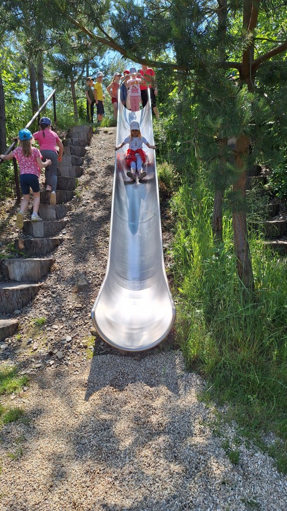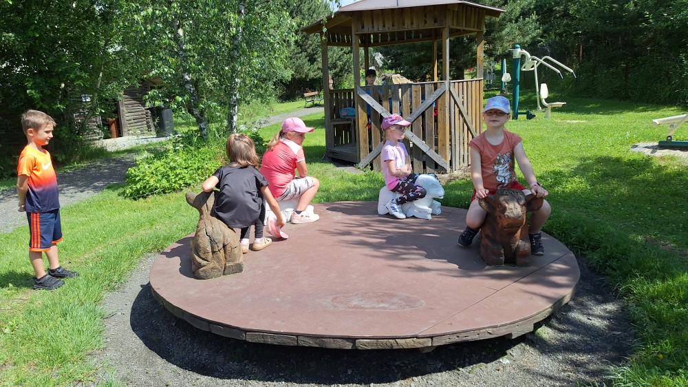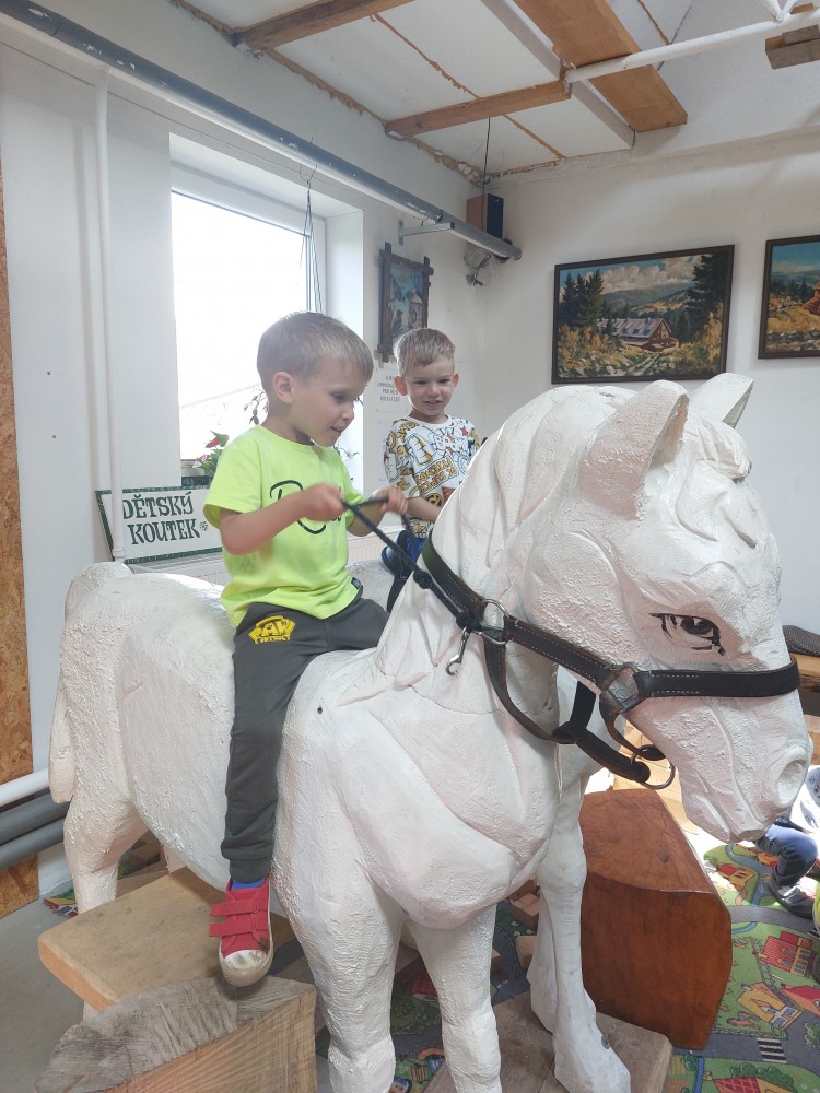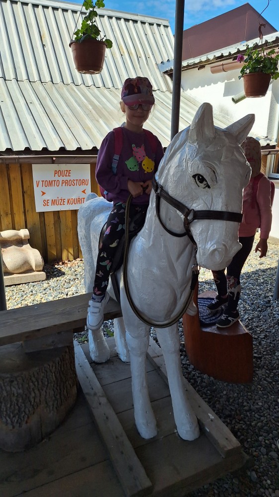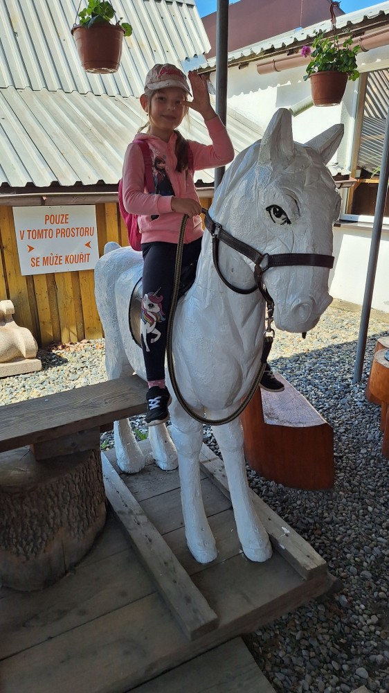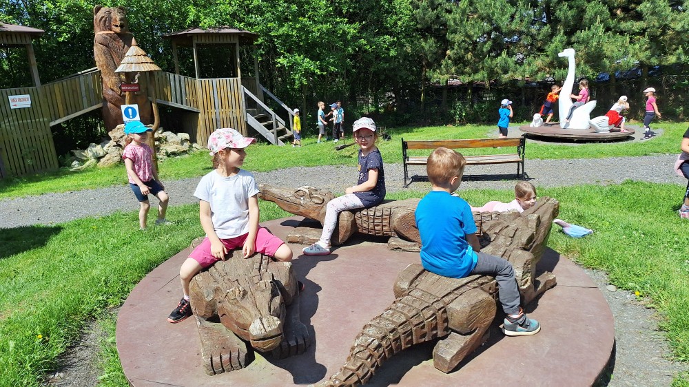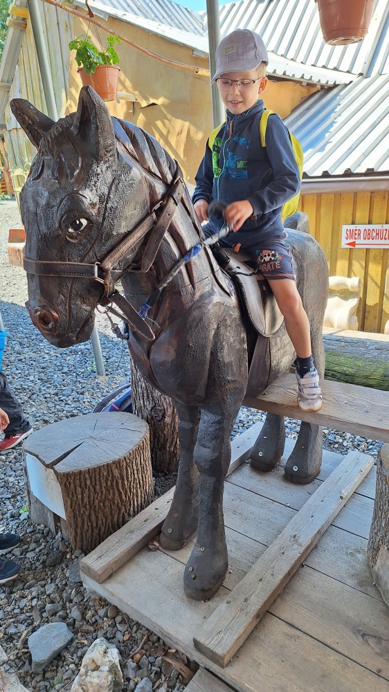 čtyř světových a dvaceti pěti českých rekordů, které byly zapsány do Guinessovy knihy rekordů.Obdivovaly vyřezávané sochy pohádkových postav, zvířat a dominantu celé galerie, vládce hor - děda Praděda. Z vyhlídky pozorovaly stádo daňků. Spoustu legrace si užily na kolotočích, skluzavkách a průlezkách. Počasí nám přálo a děti se vrátily domů spokojené a plné zážitků.