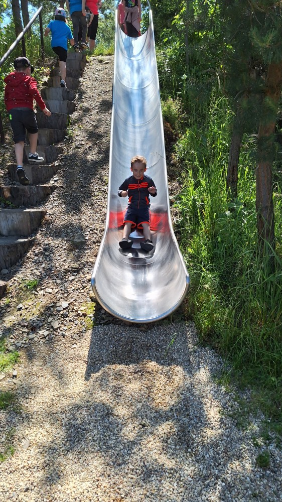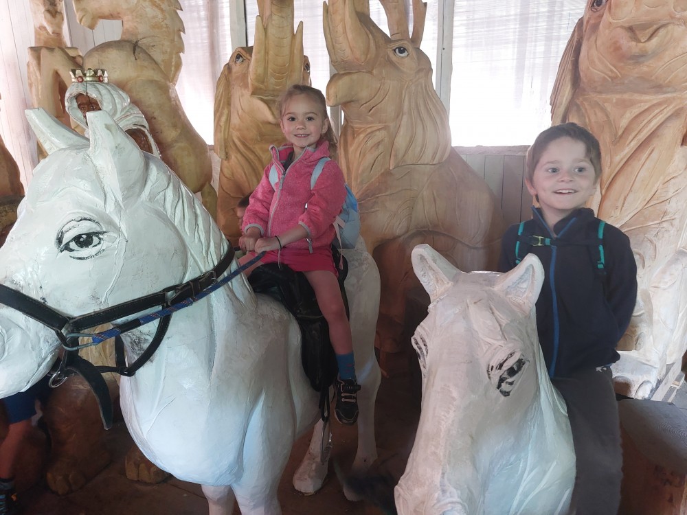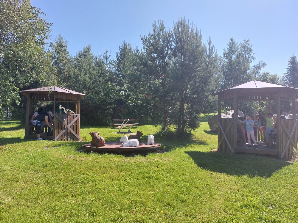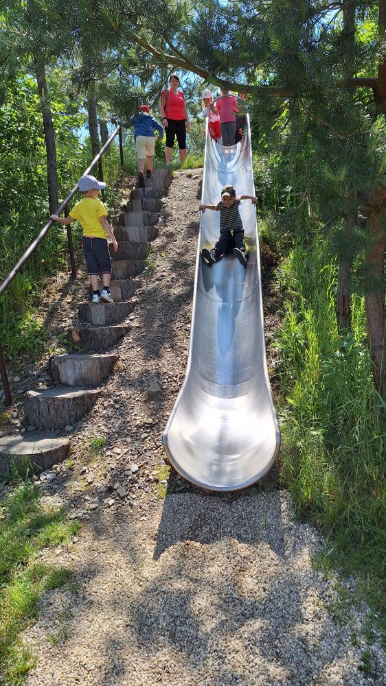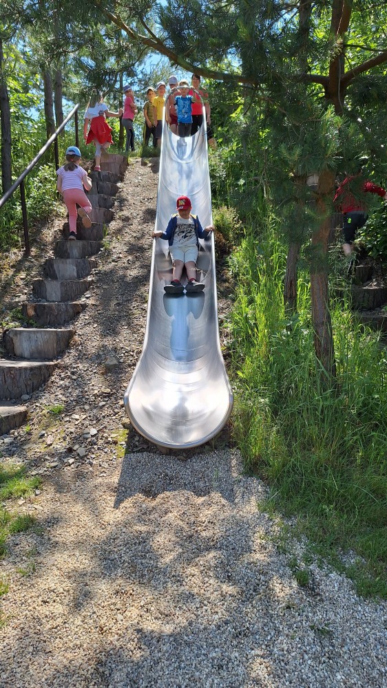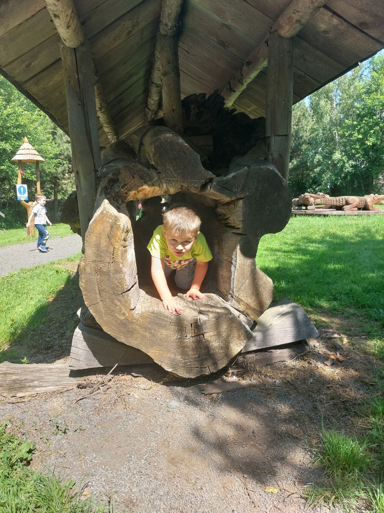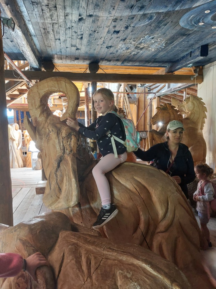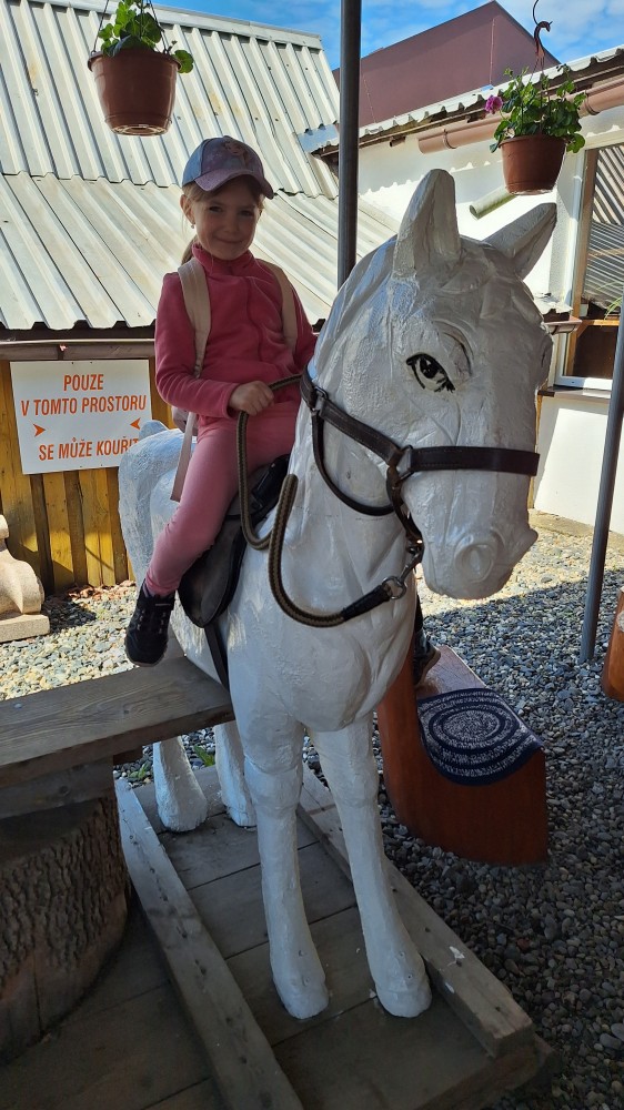 čtyř světových a dvaceti pěti českých rekordů, které byly zapsány do Guinessovy knihy rekordů.Obdivovaly vyřezávané sochy pohádkových postav, zvířat a dominantu celé galerie, vládce hor - děda Praděda. Z vyhlídky pozorovaly stádo daňků. Spoustu legrace si užily na kolotočích, skluzavkách a průlezkách. Počasí nám přálo a děti se vrátily domů spokojené a plné zážitků.